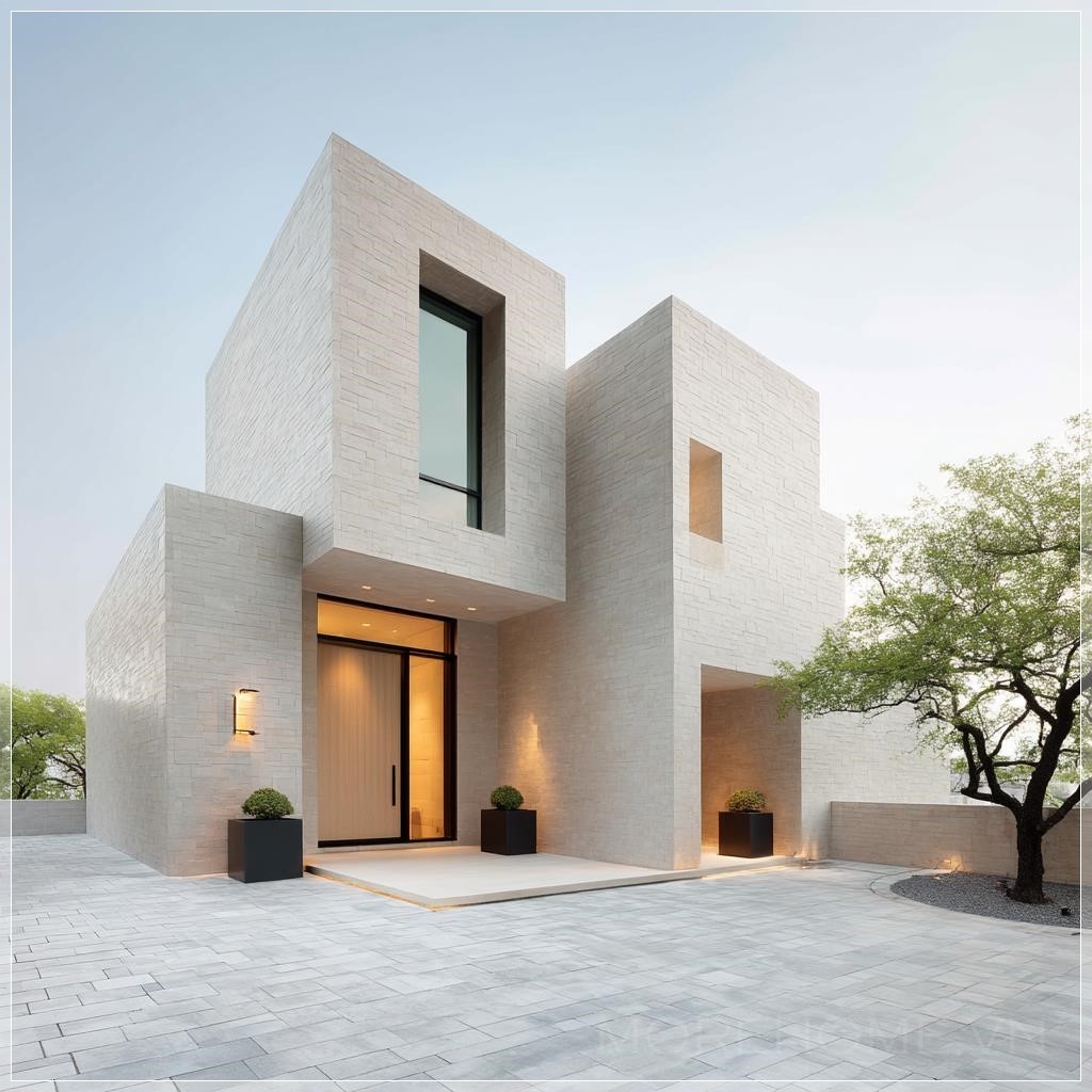 Cánh cổng đơn sơ mở ra không gian sân trong thanh lịch, nơi từng bước chân đều được tính toán để tạo nên một hành trình khám phá đầy cảm xúc. Khác với những ngôi nhà phô trương hay cầu kỳ, công trình này chọn cách thể hiện vẻ đẹp qua sự giản dị nhưng không kém phần ấn tượng. Lối vào chính được bao quanh bởi những khối bê tông có kết cấu độc đáo, tạo nên những tương phản ánh sáng và bóng tối thay đổi theo từng thời khắc trong ngày.